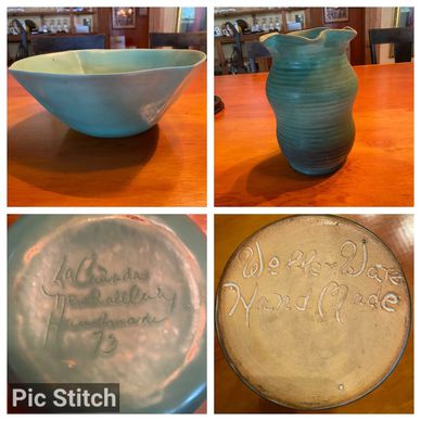 • 1970’s handmade ceramic bowl and vase, sturdy and in great shape.